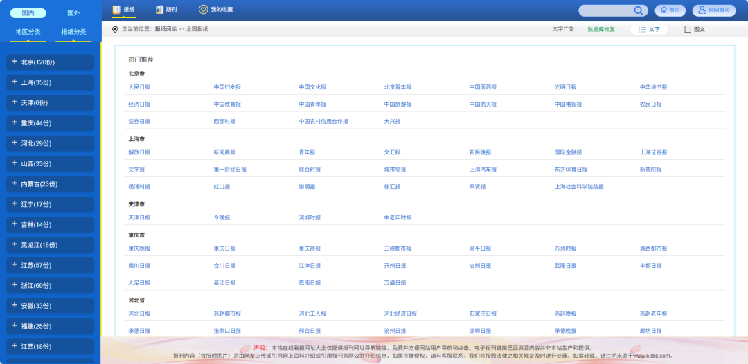 全国报刊大全和国内报刊大全-在线看报系统-在线读报-全国… 生活知识 2025-08-01 全国报刊大全和国内报刊大全-在线看报系统-在线读报-全国报刊索引-报刊在线阅读系统 全国报刊大全和国内报刊大全-在线看报系统-在线读报-报纸在线阅读系统,无论国内和国外,所有报纸期刊杂志尽在53BK报刊网 网址:http://www.53bk.com/Baokan/ 报刊 电子报刊 上一篇 【资料】2025年软考中级软件设计师|含24年资料 下一篇 WiFi Card 一键生成可打印的 Wi‑Fi 登录信息卡 延伸阅读: 热度 时效 暂无内容!