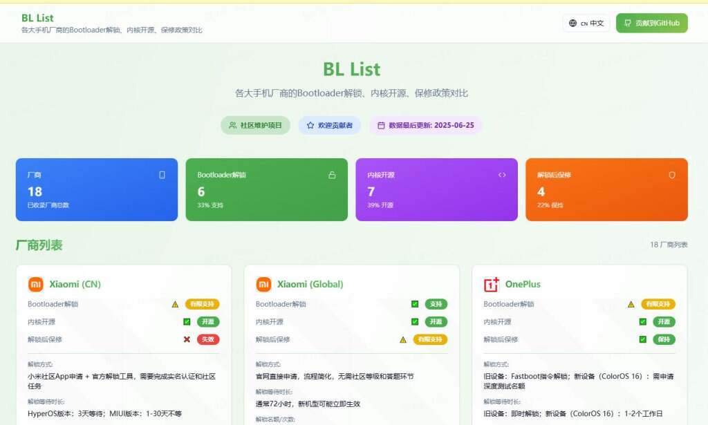 BL List:各大手机厂商Bootloader解锁、内核开源、保修政策对比 是一份聚焦手机底层开放性与售后政策的实用对比指南,专为极客用户、开发者及刷机爱好者设计,助其快速掌握不同厂商的“开放程度”与潜在风险。