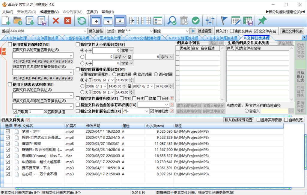 ■ 特定文件信息批量修改:批量处理包括音乐文件的标签、图片文件的EXIF和IPTC信息、Office文档文件摘要和信息、PDF文件的属性和信息、文本文件的编码格式和内容等