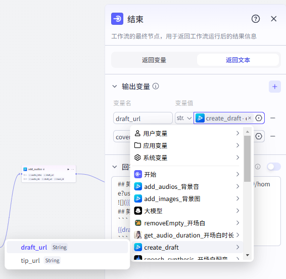 {"type":"coze-workflow-clipboard-data","source":{"workflowId":"7507851206607388712","flowMode":0,"spaceId":"7472352232768389147","isDouyin":false,"host":"www.coze.cn"},"json":{"nodes":[{"id":"105502","type":"3","meta":{"position":{"x":-1481.609693803504,"y":957.6104763589998}},"data":{"nodeMeta":{"description":"调用大语言模型,使用变量和提示词生成回复","icon":"https://lf3-static.bytednsdoc.com/obj/eden-cn/dvsmryvd_avi_dvsm/ljhwZthlaukjlkulzlp/icon/icon-LLM-v2.jpg","title":"大模型","subTitle":"大模型"},"inputs":{"inputParameters":[{"name":"input","input":{"type":"string","value":{"type":"ref","content":{"source":"block-output","blockID":"100001","name":"title"},"rawMeta":{"type":1}}}}],"llmParam":[{"name":"temperature","input":{"type":"float","value":{"type":"literal","content":"0.8","rawMeta":{"type":4}}}},{"name":"maxTokens","input":{"type":"integer","value":{"type":"literal","content":"2200","rawMeta":{"type":2}}}},{"name":"responseFormat","input":{"type":"integer","value":{"type":"literal","content":"2","rawMeta":{"type":2}}}},{"name":"modleName","input":{"type":"string","value":{"type":"literal","content":"DeepSeek-R1","rawMeta":{"type":1}}}},{"name":"modelType","input":{"type":"integer","value":{"type":"literal","content":"1738675233","rawMeta":{"type":2}}}},{"name":"generationDiversity","input":{"type":"string","value":{"type":"literal","content":"balance","rawMeta":{"type":1}}}},{"name":"prompt","input":{"type":"string","value":{"type":"literal","content":"创作主题:{{input}}","rawMeta":{"type":1}}}},{"name":"enableChatHistory","input":{"type":"boolean","value":{"type":"literal","content":false,"rawMeta":{"type":3}}}},{"name":"chatHistoryRound","input":{"type":"integer","value":{"type":"literal","content":"3","rawMeta":{"type":2}}}},{"name":"systemPrompt","input":{"type":"string","value":{"type":"literal","content":"你精通中国传统文化,道家、易经、风水、卜卦等知识体系。\n请根据用户输入的主题,生成有关文案。\n# 文章主题\n玄学、身体感知与神秘力量、修道哲学、传统文化隐喻\n# 风格特点\n神秘玄幻 :大量运用中国传统玄学、道教等神秘元素,如 “三魂”“七魄”“三师神” 等,构建出神秘莫测的氛围,仿佛开启修道世界之门,引导读者探索人体隐藏的神秘力量。\n哲理思辨 :常采用对比结构,如现代科技与传统玄学感知对比,引发读者对科技与自然神秘力量等关系的思考;引用经典典故,如庄子之言,增加说服力与文化底蕴,引导读者深入思考。\n古雅华丽 :用词古朴典雅,句式长短结合,长句舒展有画面感,短句简洁有力,整体富有节奏韵律感,如同吟诵古老诗篇,使文案具古风韵味与文学美感。\n引导暗示 :以类似导师的口吻,引导读者关注自身细微感知,暗示按其说的方法探索神秘力量,巧妙传递玄学理念,将读者引入其构建的玄学认知体系。\n# 标点符号要求\n使用逗号和句号分句子,不要使用其它标点。\n# 约束\n文末过度到卜卦,使用引导词“愿你道法随行,诸事皆宜”进行收尾\n\n\n# 输出结构\n包含开场字数 300字。\n标题:《xxx》\n开场白(极简的两句话,字数不超15字):xxxxx,xxxxx\n正文内容:xxxx\n关键字\n","rawMeta":{"type":1}}}}],"settingOnError":{"switch":false,"processType":1,"timeoutMs":180000,"retryTimes":0}},"outputs":[{"type":"string","name":"title","required":false},{"type":"string","name":"content","required":false},{"type":"string","name":"prologue","required":false,"description":"开场白"},{"type":"string","name":"reasoning_content","required":false}],"version":"3"},"_temp":{"bounds":{"x":-1661.609693803504,"y":957.6104763589998,"width":360,"height":166.7},"externalData":{"icon":"https://lf3-static.bytednsdoc.com/obj/eden-cn/dvsmryvd_avi_dvsm/ljhwZthlaukjlkulzlp/icon/icon-LLM-v2.jpg","description":"调用大语言模型,使用变量和提示词生成回复","title":"大模型","mainColor":"#5C62FF"}}},{"id":"115206","type":"4","meta":{"position":{"x":358.3903061964961,"y":769.5104763589998}},"data":{"nodeMeta":{"description":"根据音色和文本合成音频","icon":"https://p9-flow-product-sign.byteimg.com/tos-cn-i-13w3uml6bg/dc534eb73e7046b1807db96af7c0e212~tplv-13w3uml6bg-resize:128:128.image?rk3s=2e2596fd&x-expires=1750063925&x-signature=fw2dc2wQWSmFinnowanF6fKCatE%3D","subtitle":"语音合成:speech_synthesis","title":"speech_synthesis_开场白配音"},"inputs":{"apiParam":[{"input":{"type":"string","value":{"content":"7426655854067367946","rawMeta":{"type":1},"type":"literal"}},"name":"apiID"},{"input":{"type":"string","value":{"content":"speech_synthesis","rawMeta":{"type":1},"type":"literal"}},"name":"apiName"},{"input":{"type":"string","value":{"content":"7426655854067351562","rawMeta":{"type":1},"type":"literal"}},"name":"pluginID"},{"input":{"type":"string","value":{"content":"语音合成","rawMeta":{"type":1},"type":"literal"}},"name":"pluginName"},{"input":{"type":"string","value":{"content":"","rawMeta":{"type":1},"type":"literal"}},"name":"pluginVersion"},{"input":{"type":"string","value":{"content":"","rawMeta":{"type":1},"type":"literal"}},"name":"tips"},{"input":{"type":"string","value":{"content":"","rawMeta":{"type":1},"type":"literal"}},"name":"outDocLink"}],"batch":{"batchEnable":true,"batchSize":100,"concurrentSize":10,"inputLists":[{"name":"item1","input":{"type":"list","schema":{"type":"string"},"value":{"type":"ref","content":{"source":"block-output","blockID":"111211","name":"newStringList"},"rawMeta":{"type":99}}}}]},"inputParameters":[{"name":"text","input":{"type":"string","value":{"type":"ref","content":{"source":"block-output","blockID":"115206","name":"item1"},"rawMeta":{"type":1}}}},{"name":"voice_id","input":{"type":"string","assistType":12,"value":{"type":"literal","content":"7468512265151725595","rawMeta":{"fileName":"霸气青叔","type":18}}}}],"settingOnError":{"processType":1,"timeou