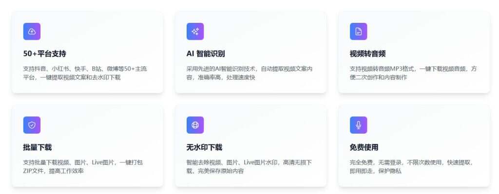 AnyToCopy免费的视频文案提取工具 在线工具 2025-11-21 支持50+平台 视频文案提取、视频去水印工具 一键提取视频文案、视频转音频MP3、视频去水印、图片去水印、Live去水印。支持抖音、小红书等50+平台,AI智能识别,批量下载,免费使用。 网址:https://www.anytocopy.com/ 在线工具 上一篇 王者TV – 影视在线平台 下一篇 BYRUTOR – 俄罗斯最大游戏破解资源站 延伸阅读: 热度 时效 暂无内容!
