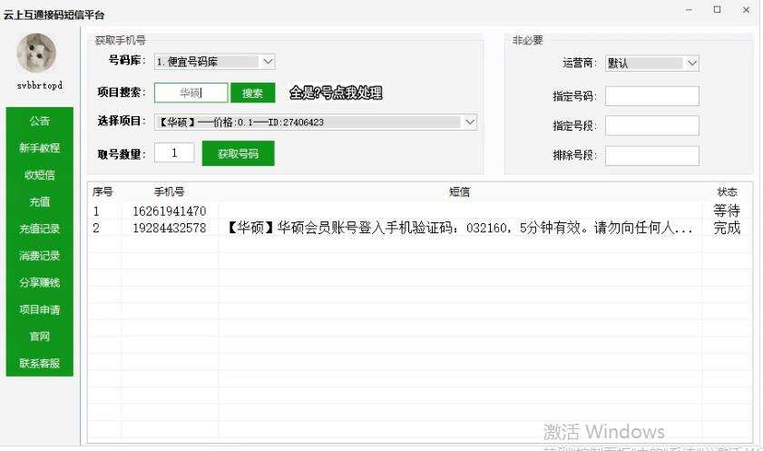 提供大量手机号码,可以大量注册任意app账号/网页账号/游戏账号等等。
