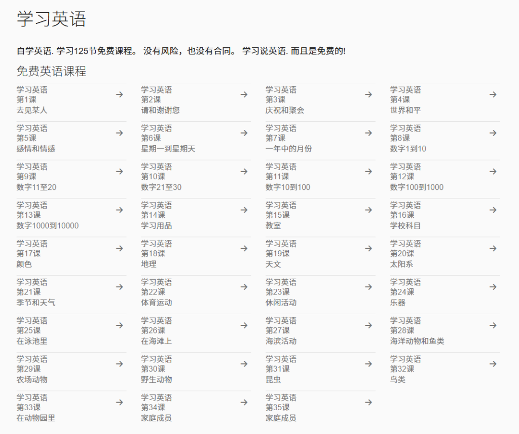 平台覆盖英语、西班牙语、法语、德语、汉语、日语、阿拉伯语等数十种语言,课程按生活场景细分——从问候、购物、点餐到旅行、求职,帮助学习者在实用情境中掌握常用词汇与句型。